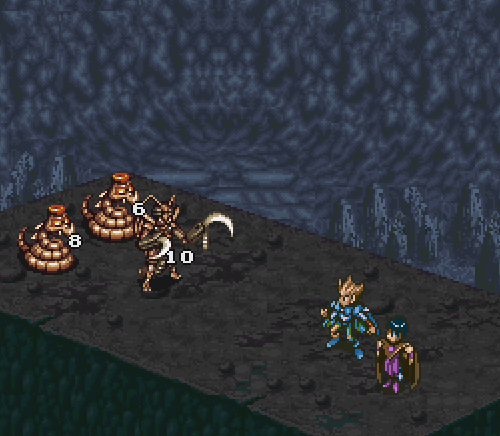 The game is a traditional Japanese-style RPG similar to Breath of Fire: turn-based battles are viewed from an isometric perspective. You control all three characters as a party, but in the beginning of the game you choose one of them as the main character, and therefore will see the game from his/her perspective. In case the characters split up, you’ll be able to control only the one you chose.