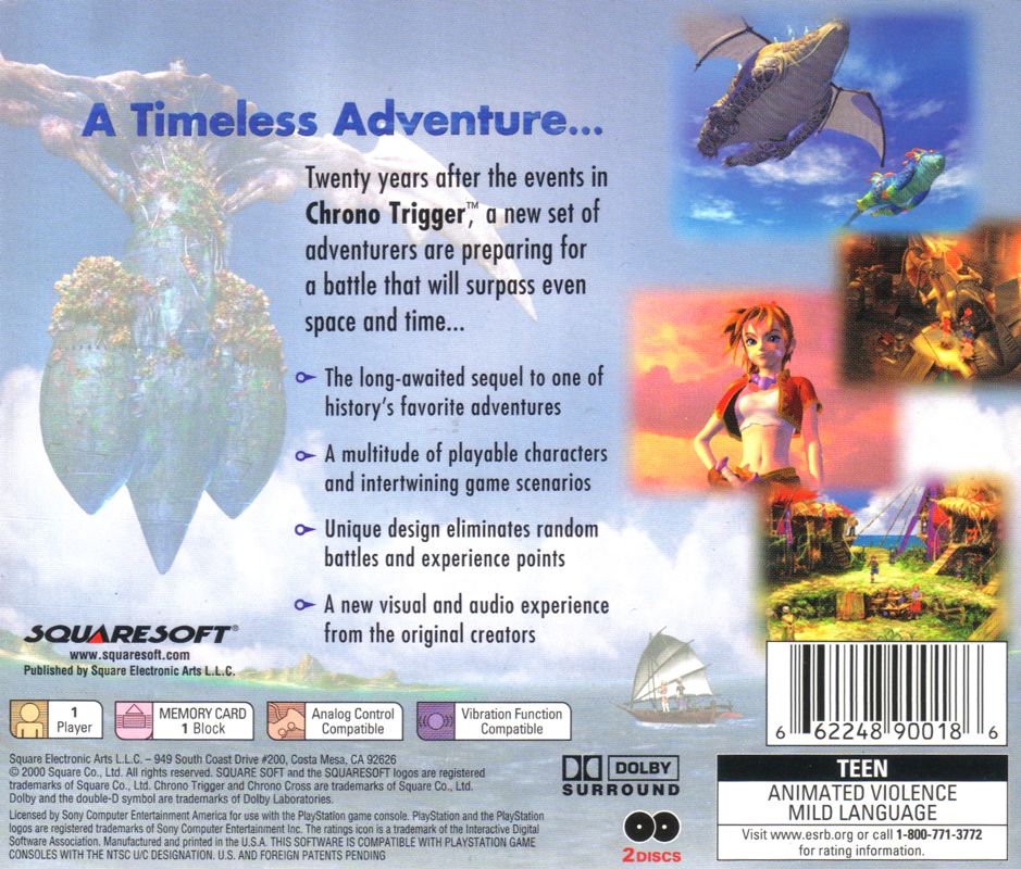Chrono Cross is a Japanese-style role-playing game, and a sequel to Chrono Trigger. The game’s story is not directly connected to that of its predecessor, though there are sub-plots and characters that refer to it. Combat in the game is turn-based; like Chrono Trigger, the game has no random battles, and enemies are always visible on screen. During battles, Serge and his party members can perform three kinds of attacks: weak, medium, and strong, which tend to miss more frequently but inflict more damage. Actions in battle deplete a certain amount of stamina, which recovers as other characters act. There are also no character levels in the game: instead, the characters get their parameters increased directly after each battle.