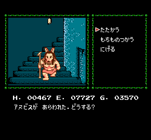 Cleopatra no Mahō (Cleopatra’s Magic Treasure) casts you as Daisuke Kusano, the son of an archaeologist. You had come to spend summer vacation with your father at a dig in Alexandria, but now he has been abducted by demons in fulfillment of an ancient curse! You must set out on a quest to ancient tombs and temples along the length of the Nile, battling thieves and demons in search of an ancient necklace–the Tear of Isis–with which you can dispel the evil spirits and free your father.