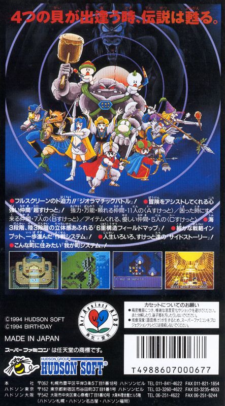 The magical land of Shelldorado is populated by creatures who look like beasts, but possess a great wisdom despite their appearance. A long time ago, the land was attacked by the Demon King Fattobajah. The Demon King was only defeated by the power of the four great elemental shells – Fire Shell, Water Shell, Air Shell, and Earth Shell. In the ultimate battle, Fattobajah was sealed by the magical Aura Balls, and the Balls themselves were sealed in a crypt in Dorado City, so that the Demon King could never reawaken.