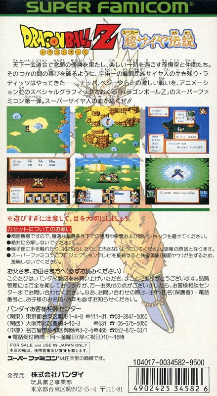Super Saiya Densetsu is based on the popular manga/animé series Dragon Ball. It follows the events described in the beginning of Dragon Ball Z, the second story block, which tells about the connection of the hero Son Goku with a powerful alien race, and new mighty foes from far away planets. The game starts just where the tale of Dragon Ball begins. Son Goku goes to meet his friends, but is stopped by a mysterious stranger named Raditz who tells Son Goku they are relatives. Raditz demands from him to destroy humanity, and as Son Goku refuses, takes his son Son Gohan hostage. To rescue his son, Son Goku joins forces with his arch-rival, the Demon King Piccolo, who obviously has his own plans concerning Raditz. And thus begins the story during which Son Goku will learn of his true origin…