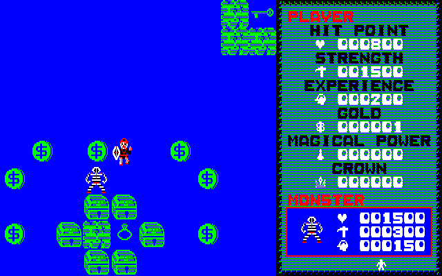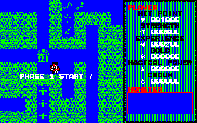 Dragon Slayer is commonly considered one of the progenitors of the action RPG genre. The premise is similar to Roguelikes: the player takes control of a knight who must fight his way through large overhead maze-like dungeons. Unlike roguelikes, the combat in the game is fully action-oriented: the player must approach the monster and “bump” into it in order to inflict damage, at the same time trying to avoid its blows. Combat takes place on the same screen as the exploration; monsters will also sometimes pursue the knight if he attempts to escape. Also contrary to roguelikes, none of the locations or items in the game is randomized.