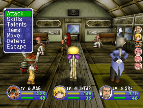 The game is more like a second chapter to the first Evolution than an actual sequel. You control the same party of characters: Mag, the cute girl Linear Cannon, the butler Gre Naid, and the adventurers Chain and Pepper. The dungeons are randomly generated. In those dungeons, you can find rare artifacts you can later sell, and special weapon enhancements called “CyFrame”, which can upgrade your characters and teach them various techniques.