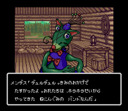 Funky Horror Band is a so-called “Musical RPG” divided into five chapters. The gameplay is relatively simple, in the traditional JRPG style typified by Dragon Quest, though certain story sequences are presented in a visual novel style with large portraits and voiced dialogue. Character customization is limited to changing equipment, as there is no experience or leveling system in the game.