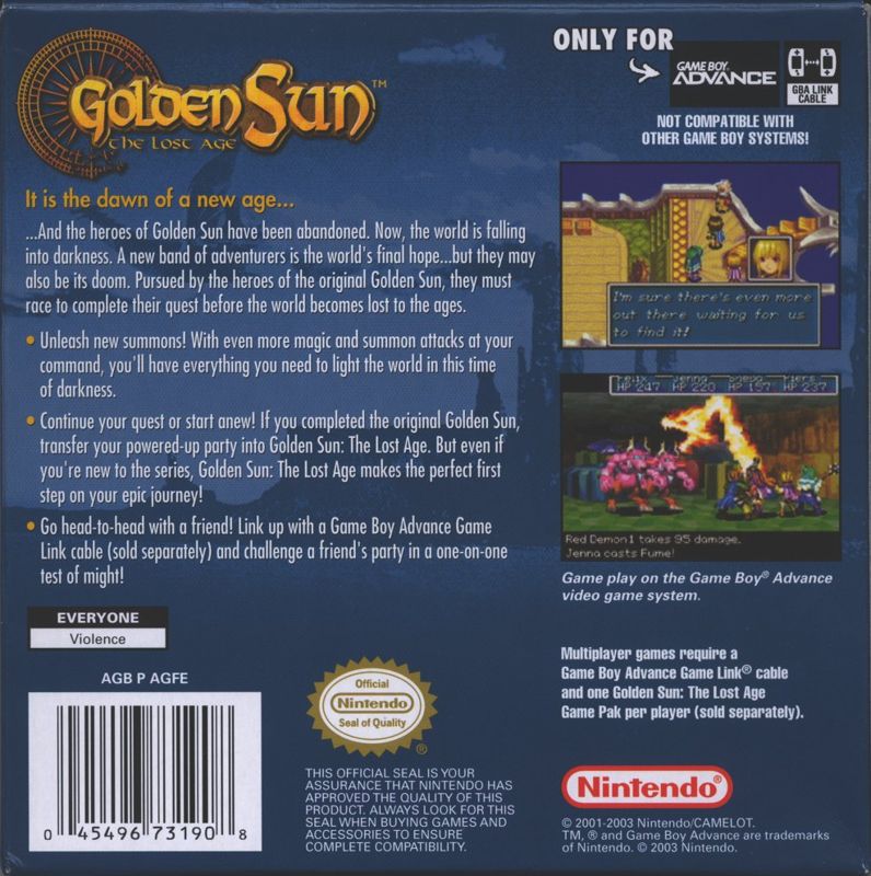 Along with 40 hours of brand new gameplay and the ability to battle a friend in a 2 player battle mode, you can also transfer information from the original Golden Sun to The Lost Age, giving you an upperhand when former character return to the action.
