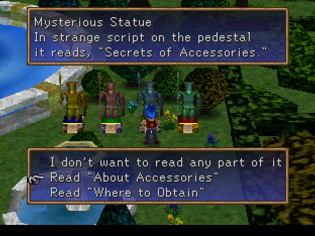 The combat system is a bit similar to that of Xenogears, as it utilizes combo attacks. Your choices aren’t just attack, defend or use special abilities: the attack option itself has many choices: high-attack, low-attack, kick etc. Apart from this system, the game is a typical Japanese-style RPG with 3D graphics, anime/manga aesthetics, world map exploration, etc.