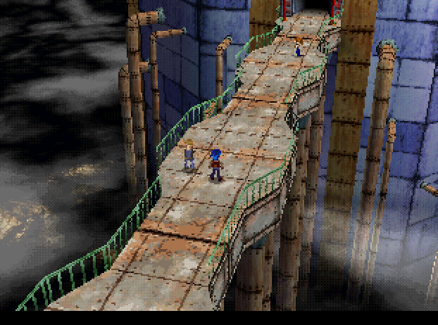 Legend of Legaia is a Japanese-style RPG. Your initial party consists of three characters: Vahn, Noa, and Gala – two males and one female. You engage yourself on a quest of freeing your planet from a mysterious mist which is floating above the planet and which can turn anything it touches into a dreadful monster. In order to clean the planet from the horrible mist, you have to find so-called Genesis Trees which are scattered around on the planet.