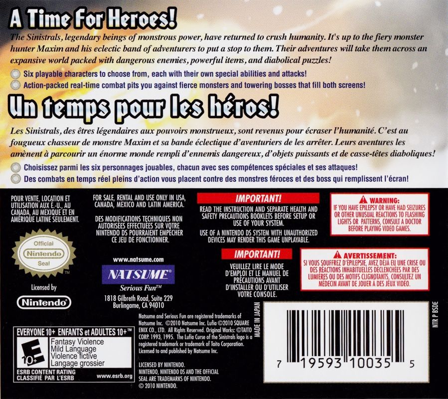 This is a Nintendo DS remake of Lufia II: Rise of the Sinistrals for the Super Nintendo, featuring an alternate fighting style: instead of turn-based RPG elements like in its predecessor, it features real-time action.