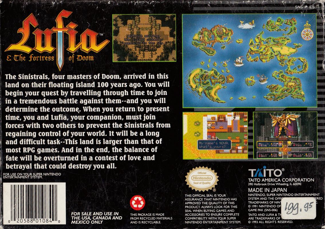 The hero Maxim and his group defeat the Sinistrals on Mt. Doom (as portrayed in Lufia II), and all is peaceful. With such a great peace, the defense forces of the world become lax. One hundred years later attacks begin taking place, supposedly by the Sinistrals. It’s up to the descendant of the hero, and his childhood friend Lufia, to form a new band of champions to save the world. Gameplay is fairly standard for RPGs, with turn-based battling by way of a menu of icons, and random battles. There’s also a higher-than-normal emphasis on puzzles within dungeons.