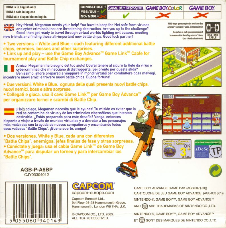 Exclusive to this, the White Version, are specialy developed chips (Giga Class chips) that only the White Version of Mega Man can use. You can also trade various chips between players using either Blue or White versions of BN3. Other differences include exclusive enemy bosses in areas and a unique battle style for each games version that Mega Man can use.