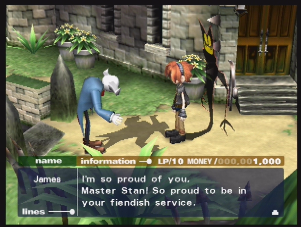 The game’s premise is that a boy (nameable by the player with the default name of Ari) makes a deal with an evil spirit to cure his sister of a curse that’s caused her to speak entirely in pig Latin. The spirit, Evil King Stanley Hihat Trinidad XIV (or Stan for short), assumes the role of your shadow and orders you to track down the lost remnants of his power, which have been siphoned away by impostor Evil Kings over the last few thousand years while he was trapped in a bottle. And, while you’re at it, Stan would also like you to help him take over the world.
