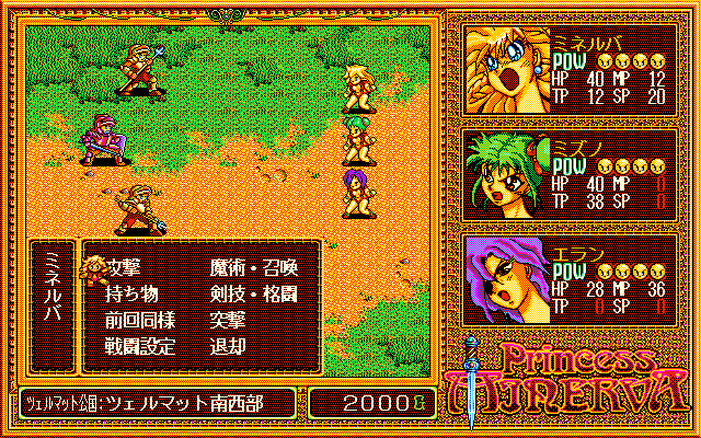 Princess Minerva is based on an anime of the same name. In the kingdom of Whistler, the best fighters are young, beautiful women, proficient in many styles of combat. Princess Minerva is one of them. She participates in a tournament, battles against the best female fighters of the country, and ultimately joins forces with them, building a super-powerful party that is bound to defeat the archenemy of the Queen of Whistler, the evil sorceress Dynastar.