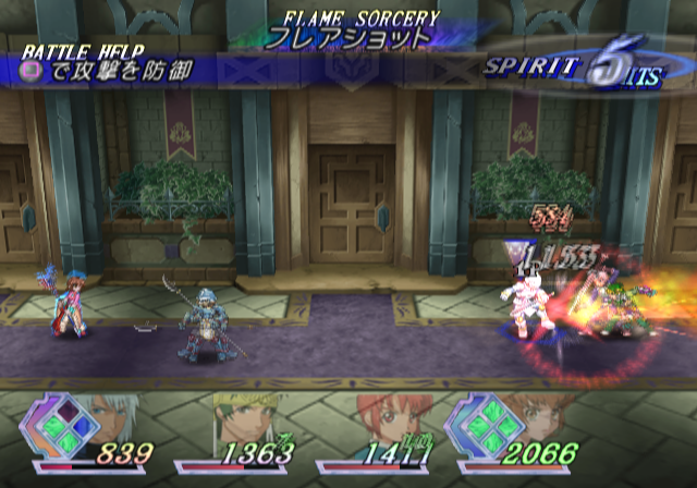 Tales of Rebirth features real time 3D backgrounds with 2D animé-style character and enemy sprites.