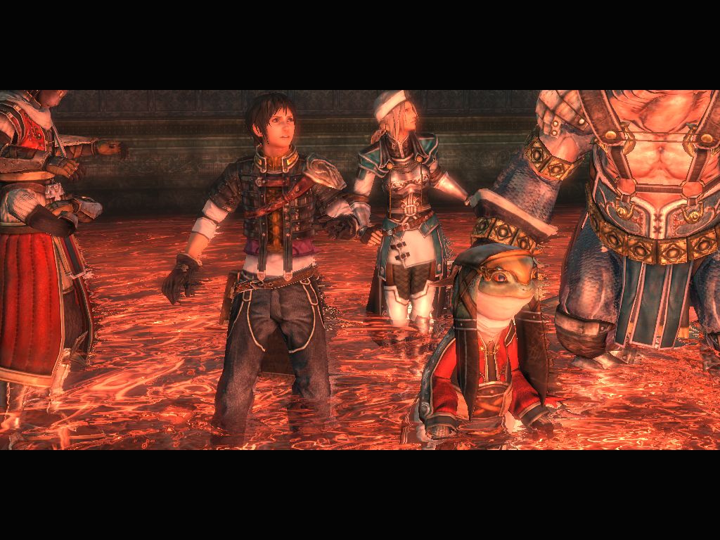 In The Last Remnant, the player controls the young hero Rush Sykes on a quest to rescue his kidnapped sister. While chasing after the mysterious kidnappers, Rush gains the aid of the Four Generals of Athlum: Emma the Mitra (a human), Torgal the Sovani (a four-armed feline), Blocter the Yama (a hulking fish creature), and Pagus the Qsiti (a humanoid frog), as well as their ruler, Marquis David whose soul is bound to the remnant (magical artifact) weapon Gae Bolg. What starts as a rescue mission, later unfolds a more sinister plot of greater powers.
