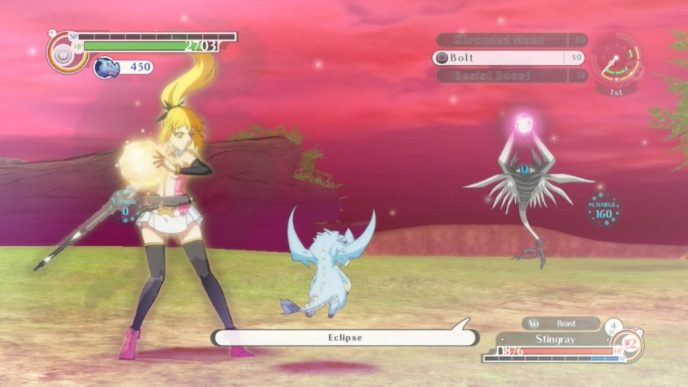 The game uses hand-drawn anime style animation for character during cut-scenes, in-game battle sequences or world exploration. During the battle, you can time your actions to evade the enemy attacks, or block them and power up your counter attacks.