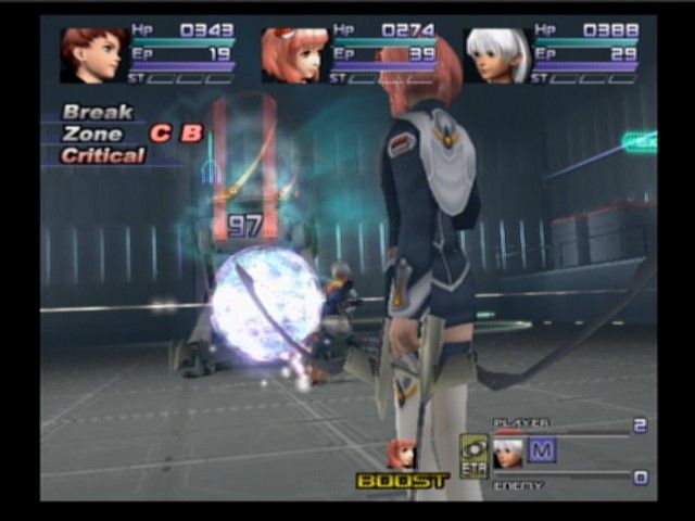 The AGWS (giant mech) battles are still present in the second episode, but it is no longer possible to switch to AGWS at any point, as it was in the first game. Instead, these battles are dictated by the plot and require the player to exploit the unique abilities of the mechs. Another game aspect removed from the first game is money, as well as shops, weapons, and armor of any kind. The only items in the game are healing items or keys that unlock the ability to learn high level skills. The skill system has been re-designed, each character possessing his or her own “tree” of unique skills they can gradually learn. Like in the first episode, the dungeons contain environmental and logical puzzles to solve.