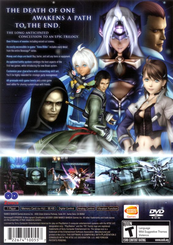The concluding chapter of the Xenosaga science fiction role-playing game series begins one year after the events described in the previous episode. The main heroine Shion Uzuki is shocked by the discovery that implies a connection between Vector Corporation, the organization she is working for, and the Gnosis event, which set the whole story in motion. She leaves her post and tries to solve the mystery on her own. Meanwhile, the KOS-MOS project is halted, and a mysterious new android, T-elos, emerges to replace it. Shion and her friends are about to fight the ultimate battle that will determine the destiny of mankind.